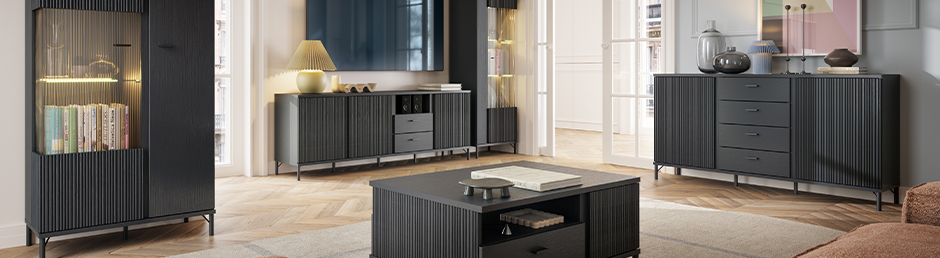 Meet the Lusaka Collection, sophisticated black graphite furniture that brings Scandinavian elegance into your home. These aren't just storage pieces; they're statement-makers with distinctive vertical fluted fronts that create stunning texture and depth. From versatile sideboards and sleek TV cabinets to elegant display units and a coordinating coffee table, every Lusaka piece combines Instagram-worthy looks with genuine practicality.